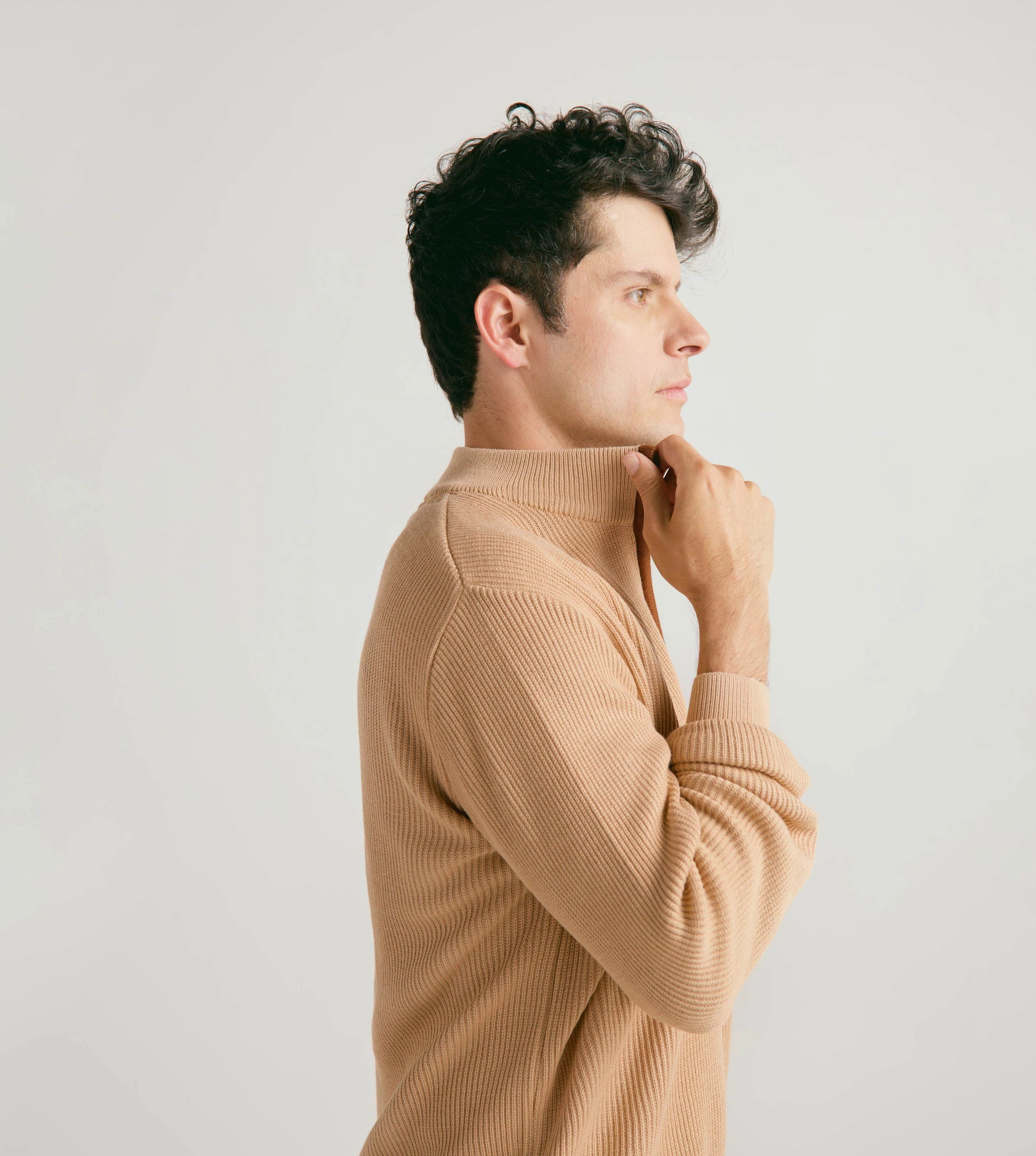 Suéter Cuello Alto Punto Inglés - Almendra / Terracota- Precio regular