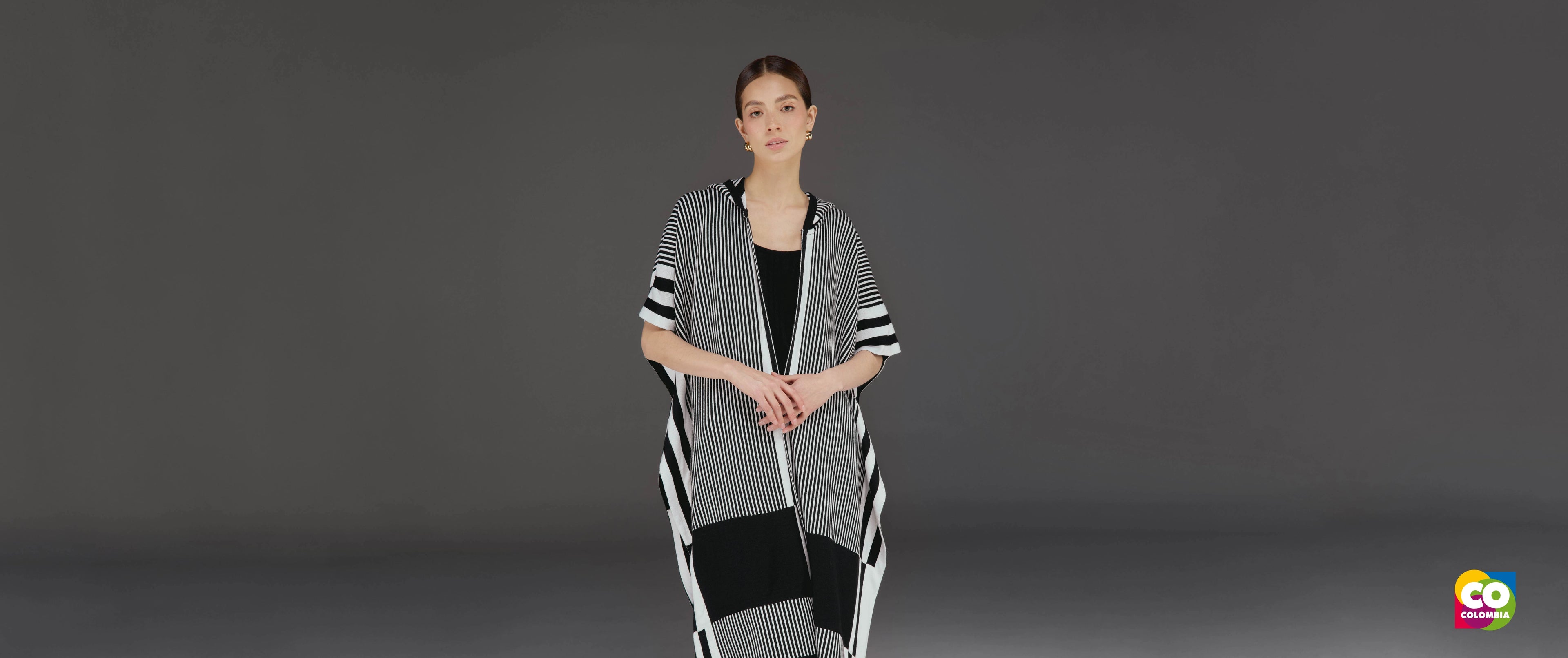 Ruana Larga Etnica 2 Colores Doble Faz - Negro/Marfil- Precio regular