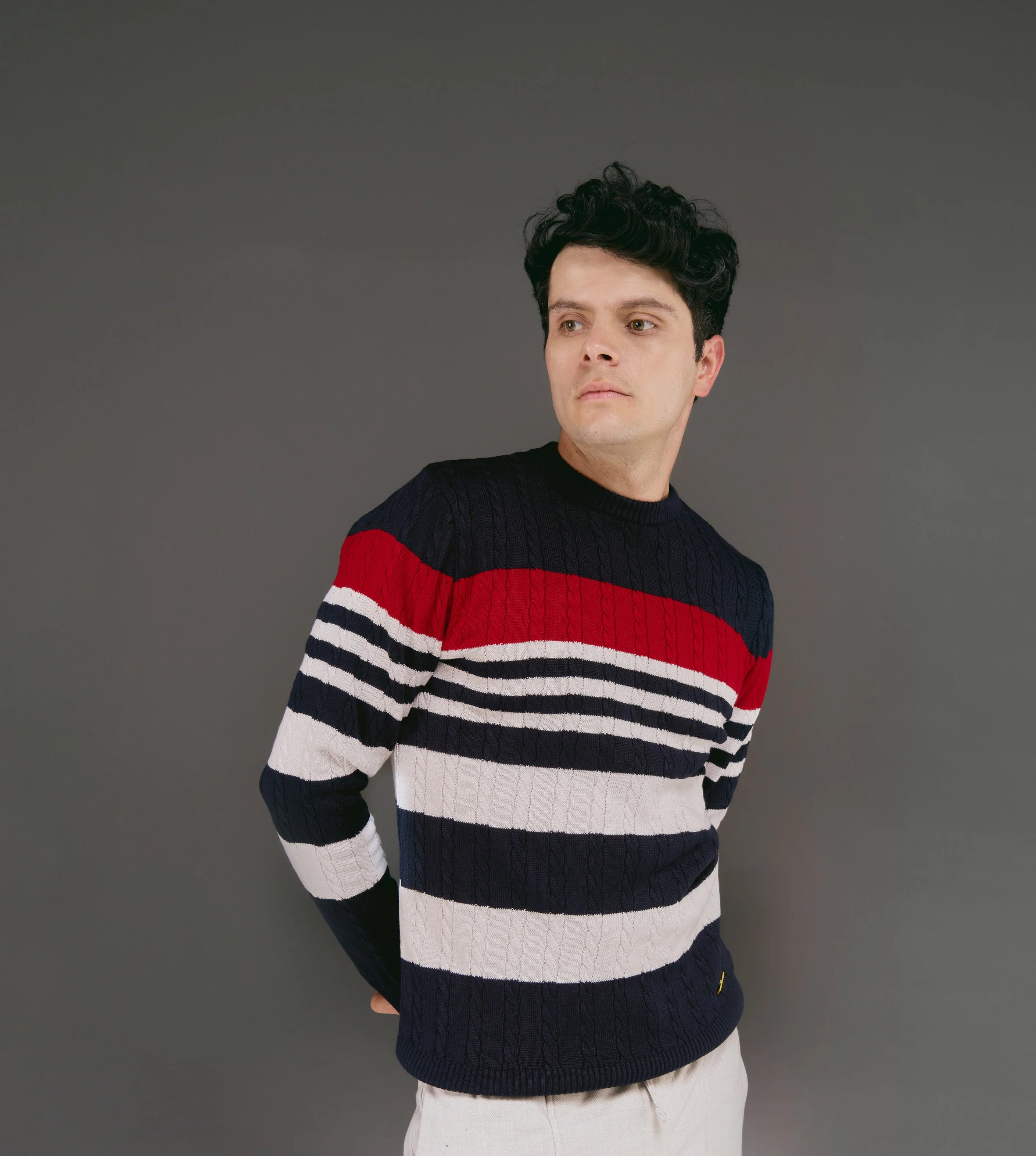 Saco Trenzado 3 Colores - Azul/Rojo/Marfil- Precio regular