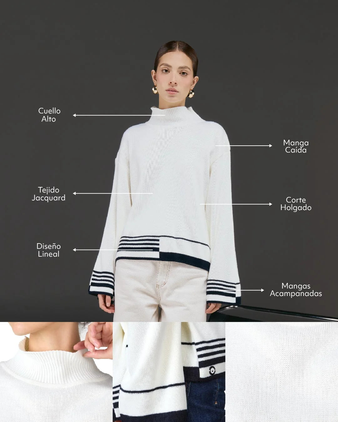 Esta prenda es perfecta para aquellas que buscan un estilo relajado, pero sin perder elegancia. Su cuello alto y corte holgado lo hacen ideal para los días más frescos, mientras que su versatilidad te permite usarlo tanto en ocasiones casuales como en eventos más formales.