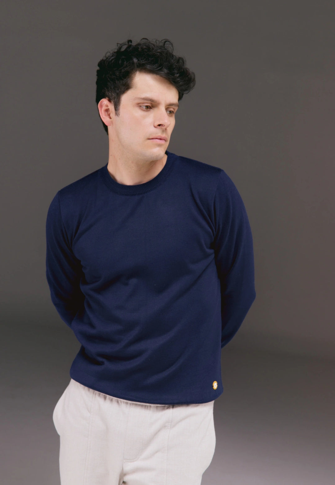 El Buzo Robert es un saco confeccionado en un tejido delgado que lo hace ideal para usar en diversas estaciones del año. Su diseño cuenta con un cuello redondo, elegante y un atractivo diseño en hilo con textura de espina de pescado, que añade un elemento distintivo a la prenda. Los ribetes acanalados en los puños y en la parte baja refuerzan su estilo clásico.