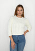 Textura de cables marcados, largo corto favorecedor para tiros altos y acabados en rib que estabilizan la prenda.