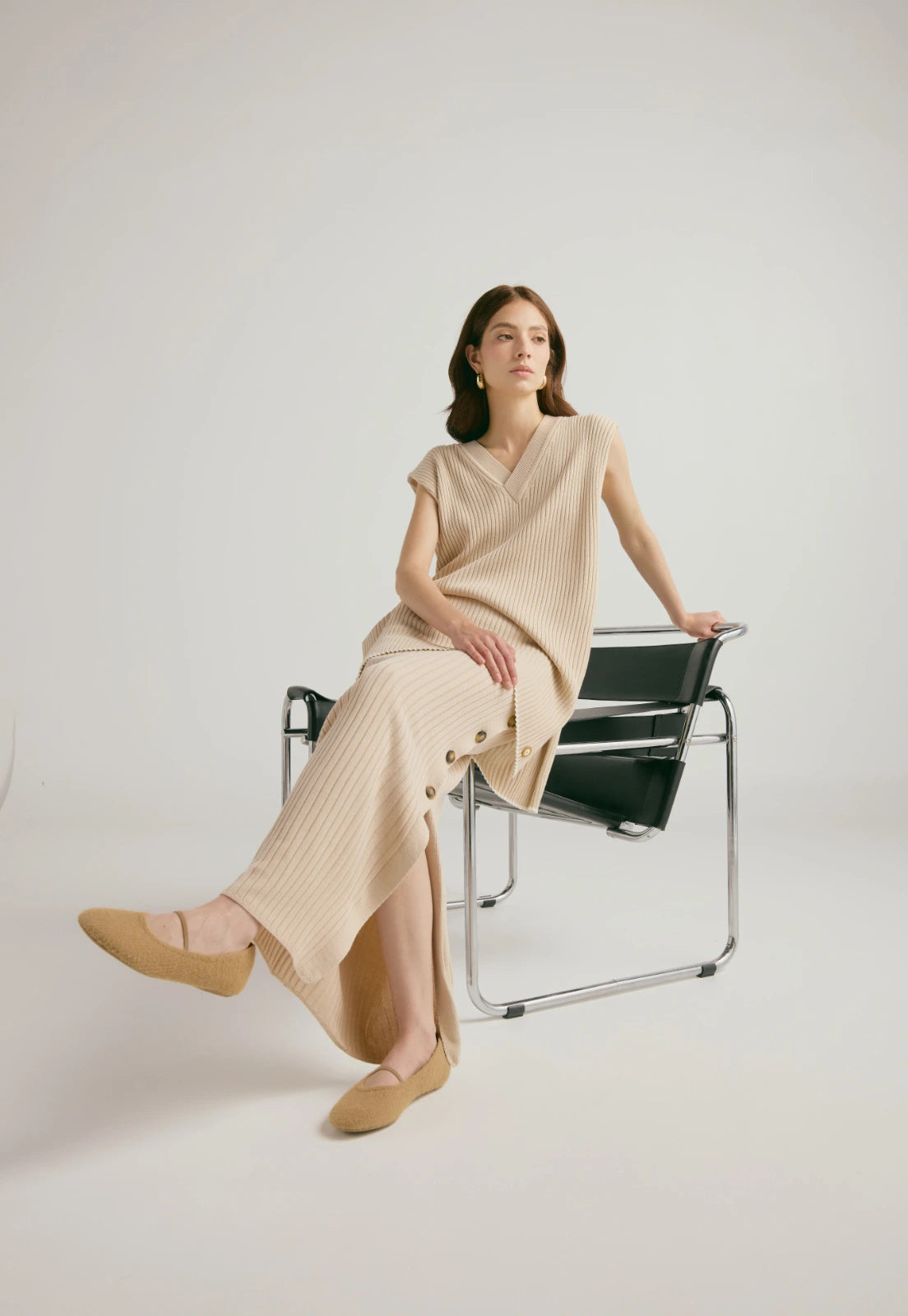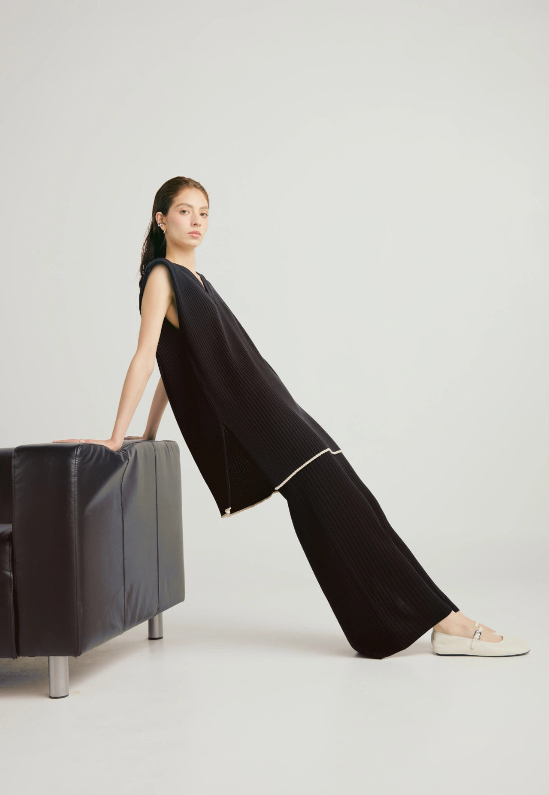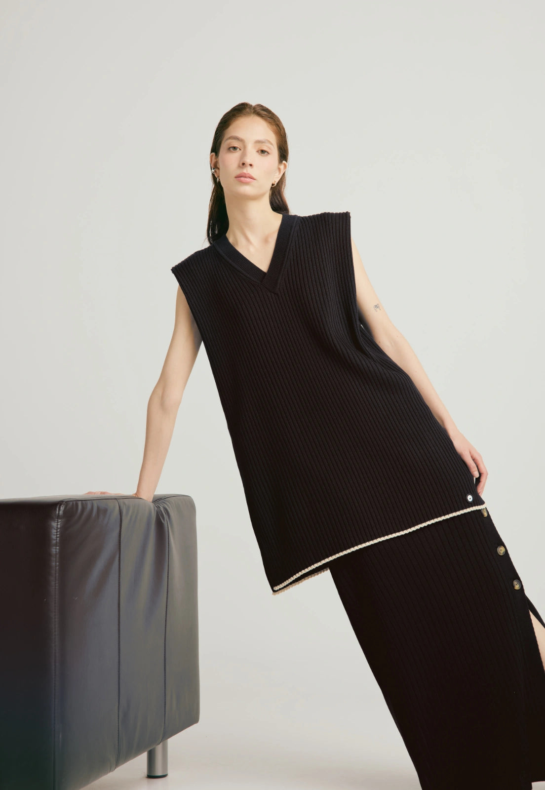 Chaleco Andrea, tejido en canal, cuello escote en V, diseño suelto y sin mangas, para mujer.