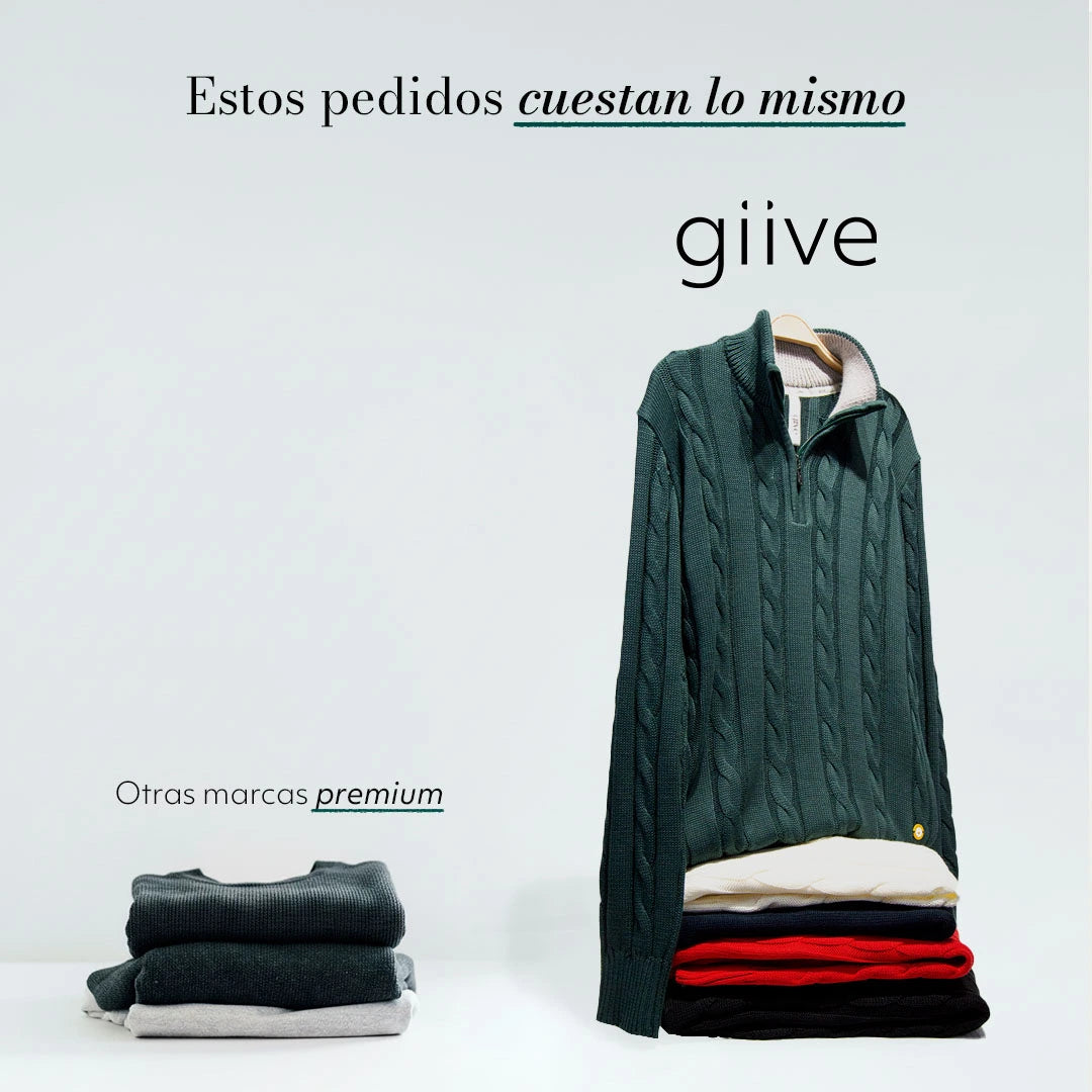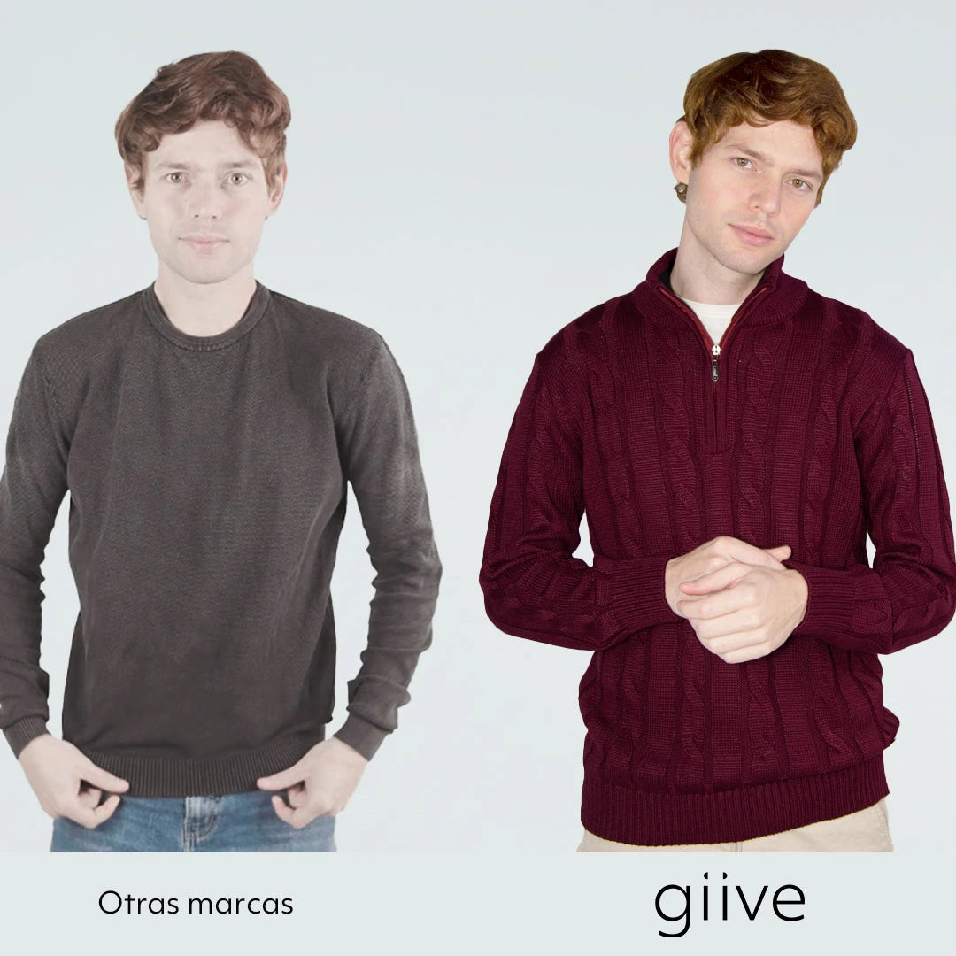 En Giive la mayoría de suéter tejidos están hechos en acrílico, el cual tiene la misma sensación de tacto que la lana, pero no es de origen animal. Es un hilo suave al tacto y de buena calidad. Las fibras animales como la lana, son difíciles de conseguir, debido al gran esfuerzo y en ocasiones maltrato a los animales. Además son hilos muy costosos. Por lo anterior decidimos utilizar el hilo, pues es muy similar a la lana y no tenemos todos los problemas anteriormente mencionados.