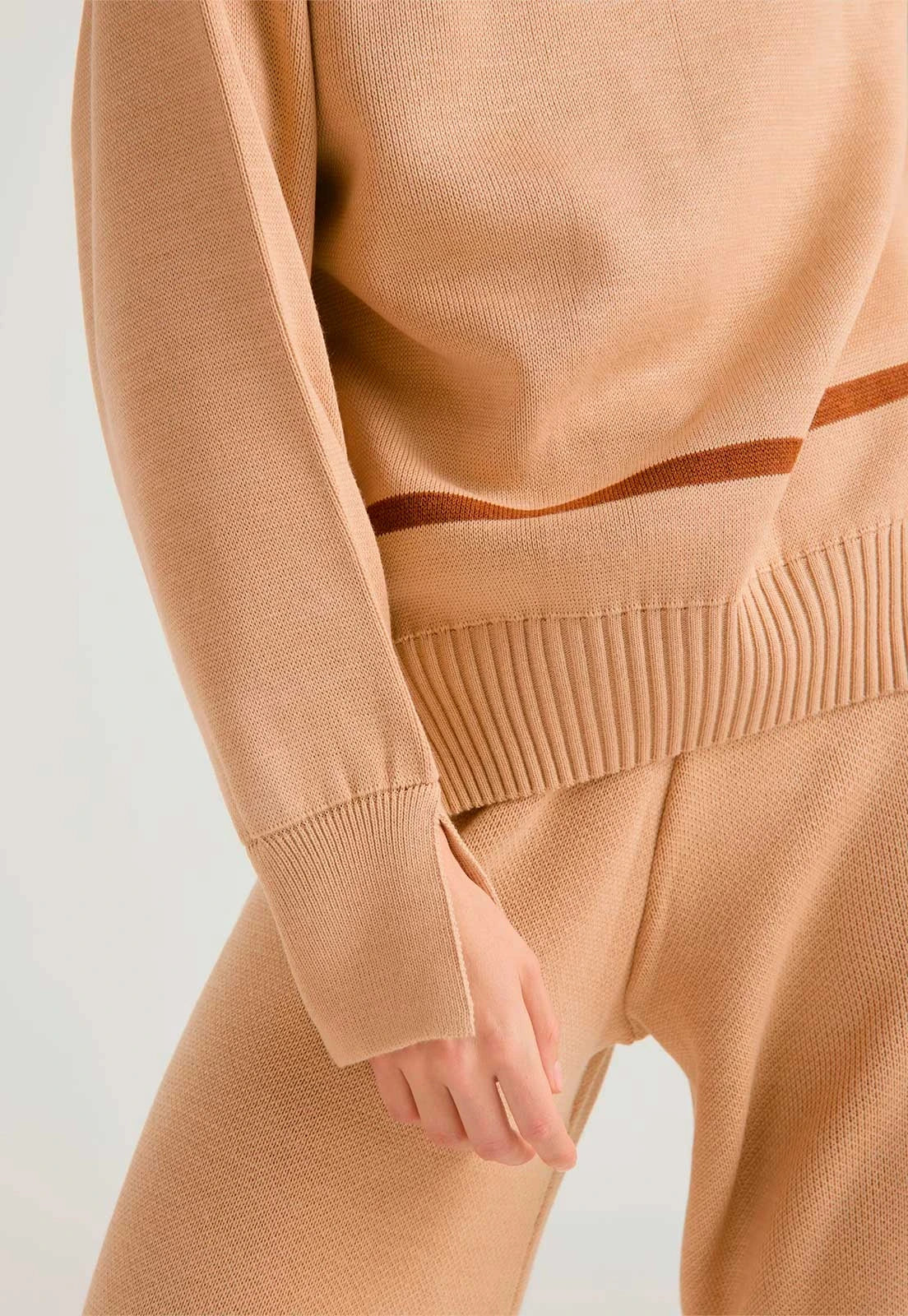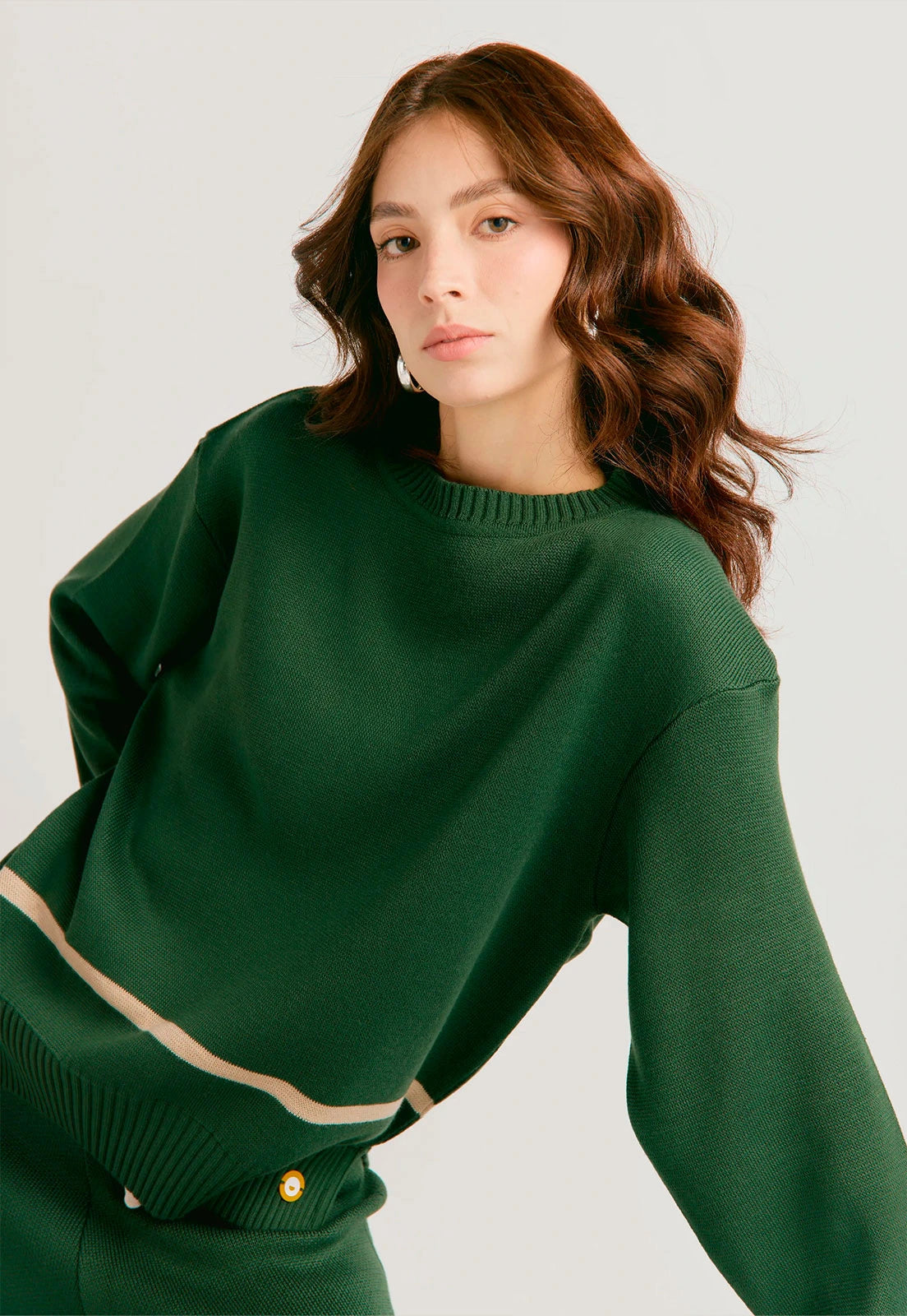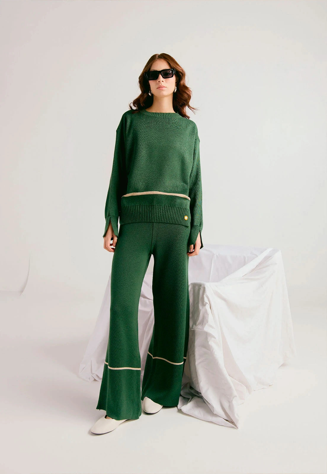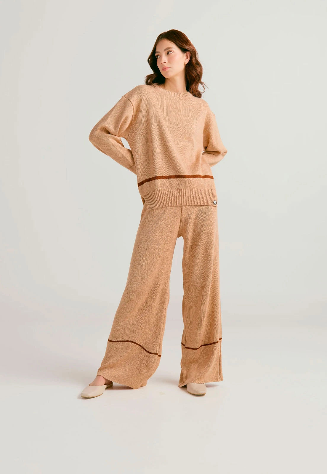 Set conjunto Suéter y Pantalón  Suéter Lauren de Giive, largo con cuello redondo, corte suelto y tejido en hilo suave.  y Pantalón tejido para mujer, corte tiro medio con bota campana sutil y cremallera invisible. Set conjunto Suéter y Pantalón  Suéter Lauren de Giive, largo con cuello redondo, corte suelto y tejido en hilo suave.  y Pantalón tejido para mujer, corte tiro medio con bota campana sutil y cremallera invisible.