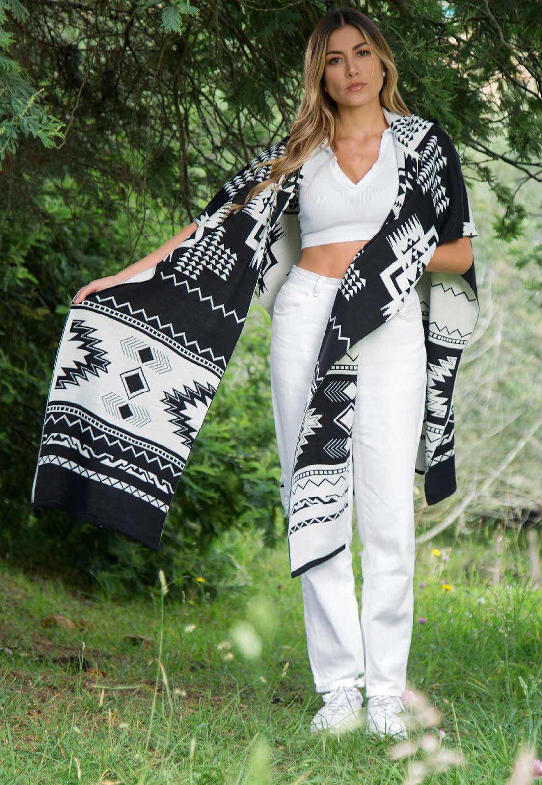 Ruana Artesanal Pirámides Doble Faz de Giive: Elegancia y Versatilidad en Cada Estación